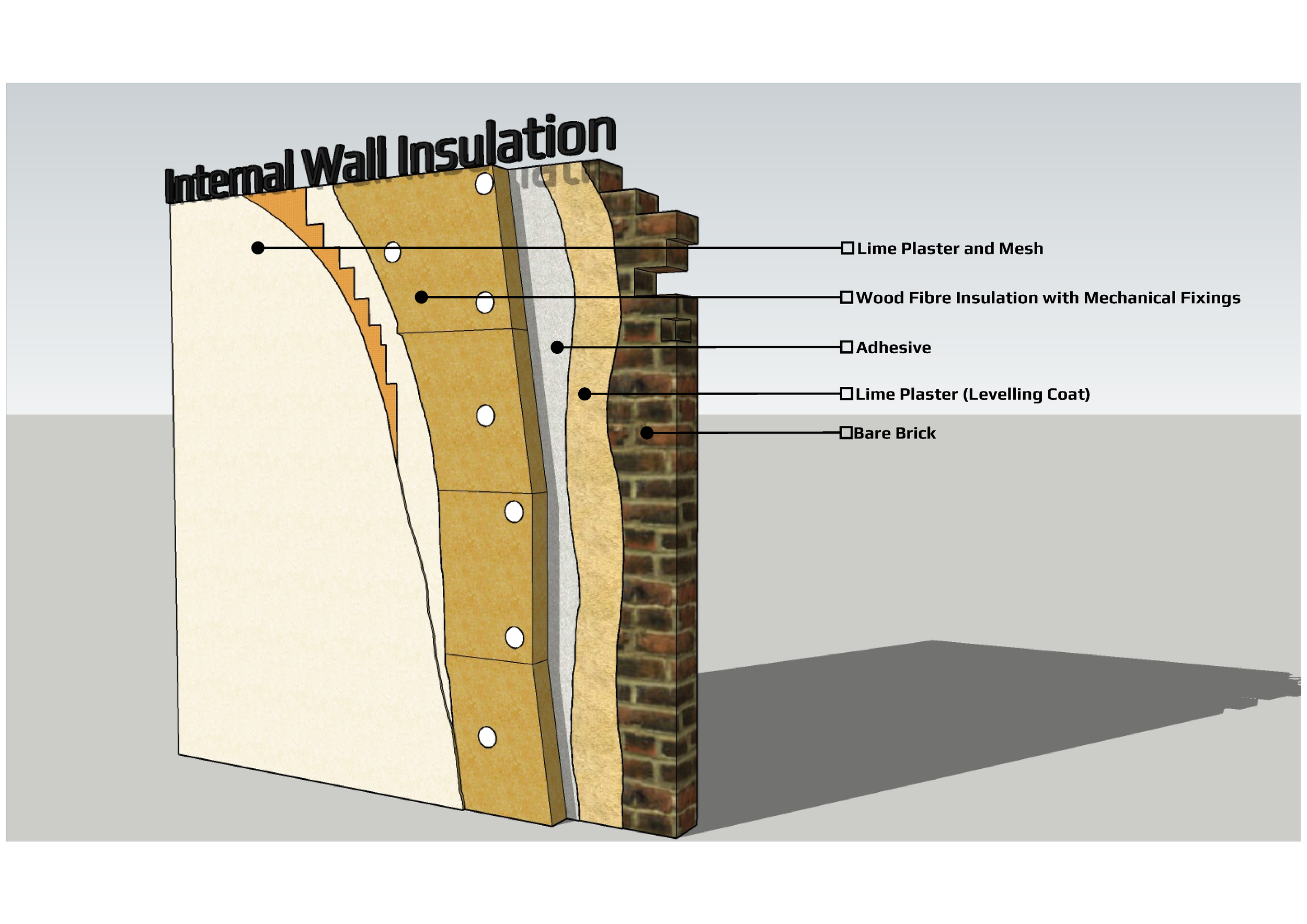 The wood fibre insulation boards are then fixed to the wall using mechanical fixings and adhesive.